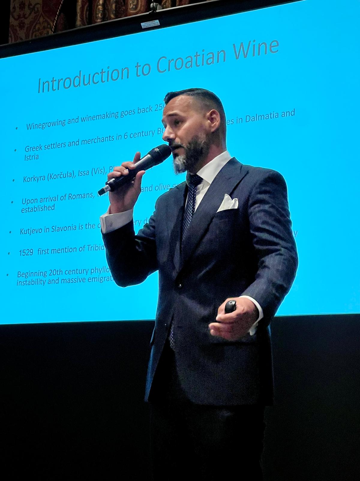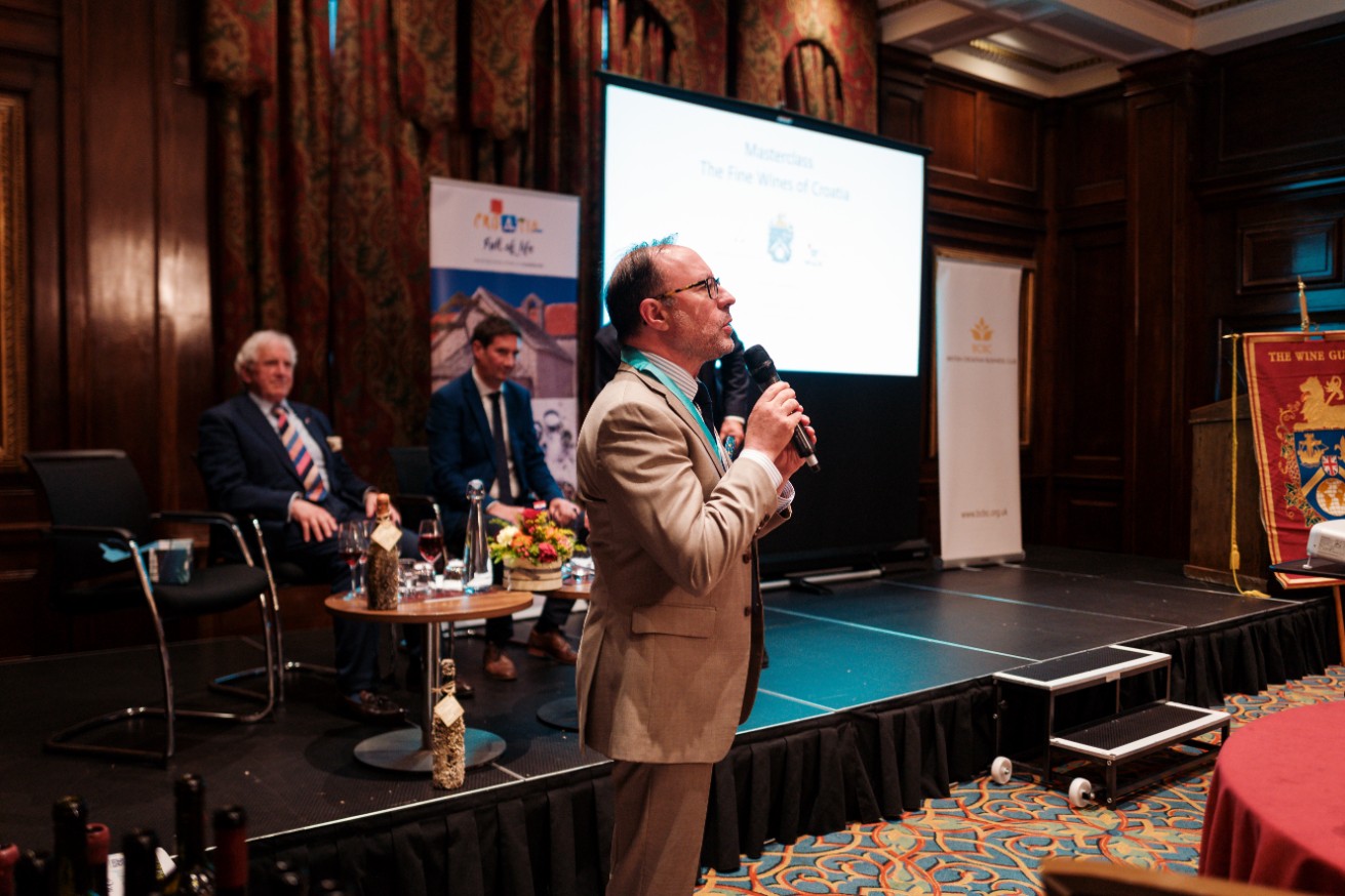 The evening was hosted by Mr Christopher Burr MW, who welcomed to the stage Daniel Čečavac, a sommelier who travelled especially from Croatia, together with Saša Štula, an oenologist.